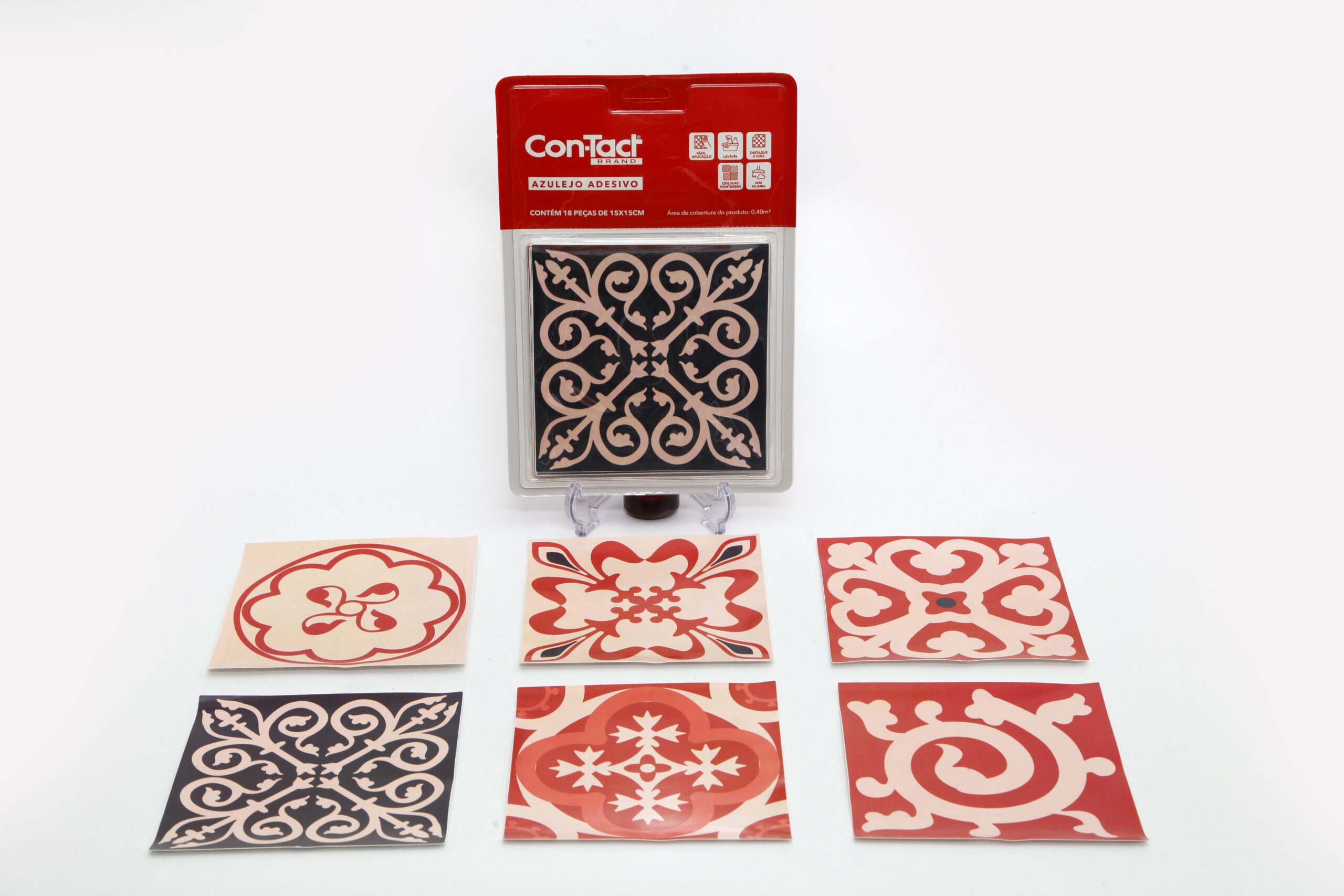 – Composição: 12 peças de blisters de azulejo adesivo Con-tact.