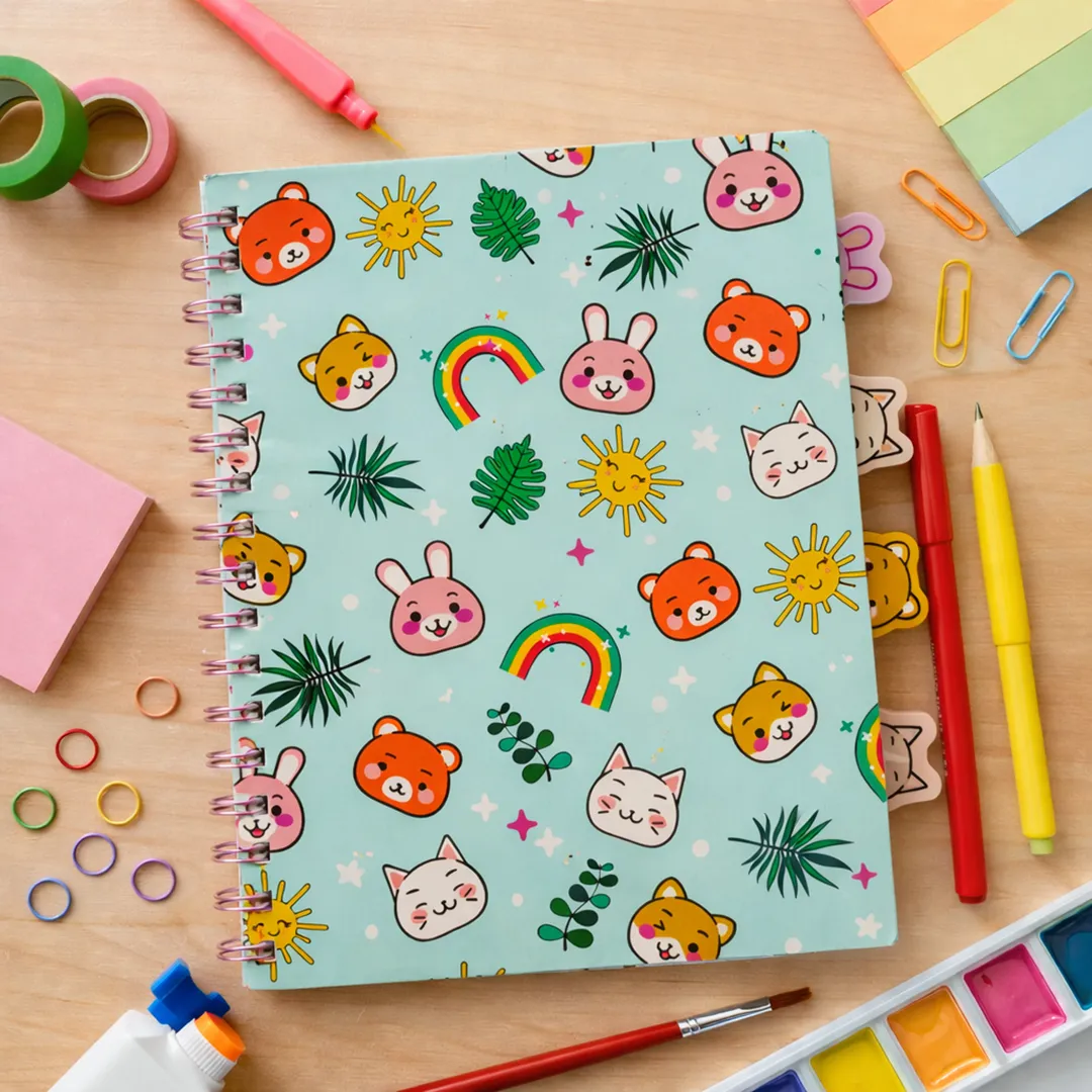 Descrição do produto: Caderno com 5 divisórias Kawaii — ideal para quem ama papelaria fofa e organizada! Com capa colorida repleta de bichinhos, arco-íris e detalhes divertidos, este caderno é perfeito para anotações, estudos ou planner pessoal. Possui abas separadoras para facilitar o uso no dia a dia.