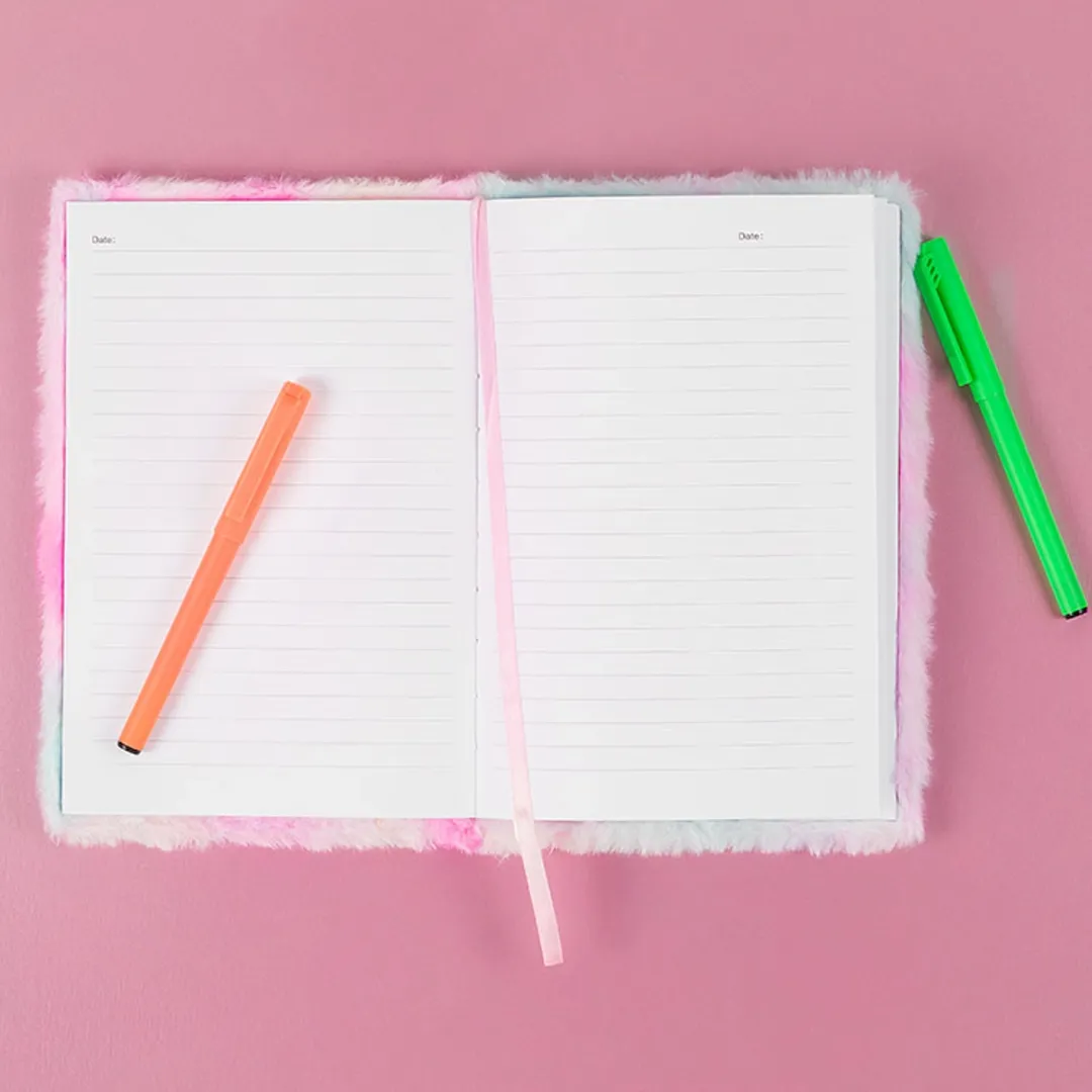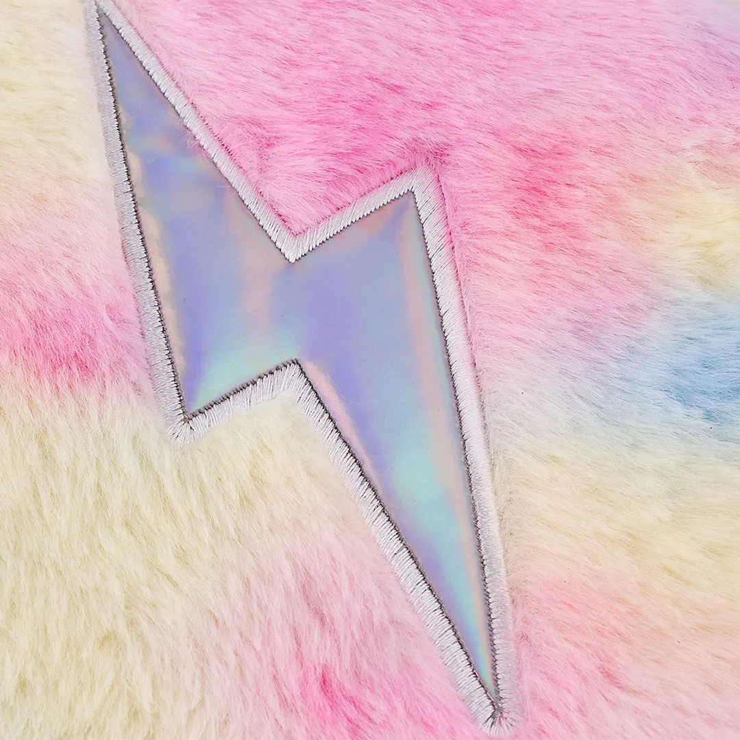 Descrição do produto: Caderno Rainbow Plush — Capa super macia e pelúcia colorida em tons de rosa, lilás e azul, perfeita para quem ama papelaria fofa e estilosa. O detalhe em formato de raio holográfico traz um toque moderno e cheio de personalidade. Ideal para anotações, desenhos ou como diário pessoal. Um item indispensável para estudantes e apaixonados por papelaria criativa!