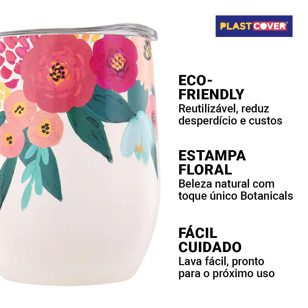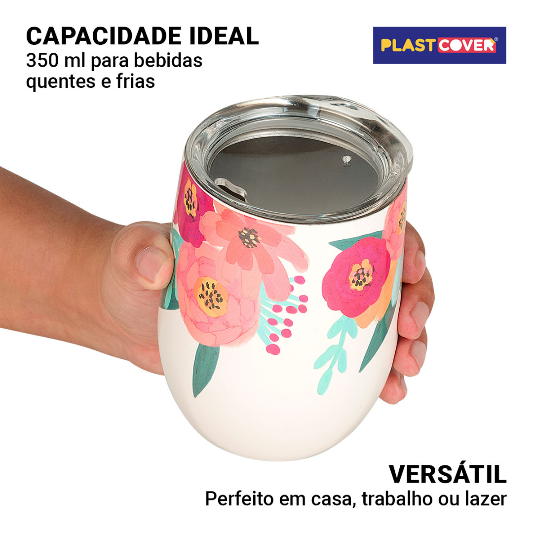 Descrição do produto: Estilo e Praticidade para o Seu Dia! O copo térmico Plastcover da linha Botanicals, com capacidade de 350ml, mantém suas bebidas na temperatura ideal por mais tempo. Com design elegante e estampas inspiradas na natureza, é perfeito para levar para o trabalho, estudos ou passeios. Prático, leve e cheio de charme!