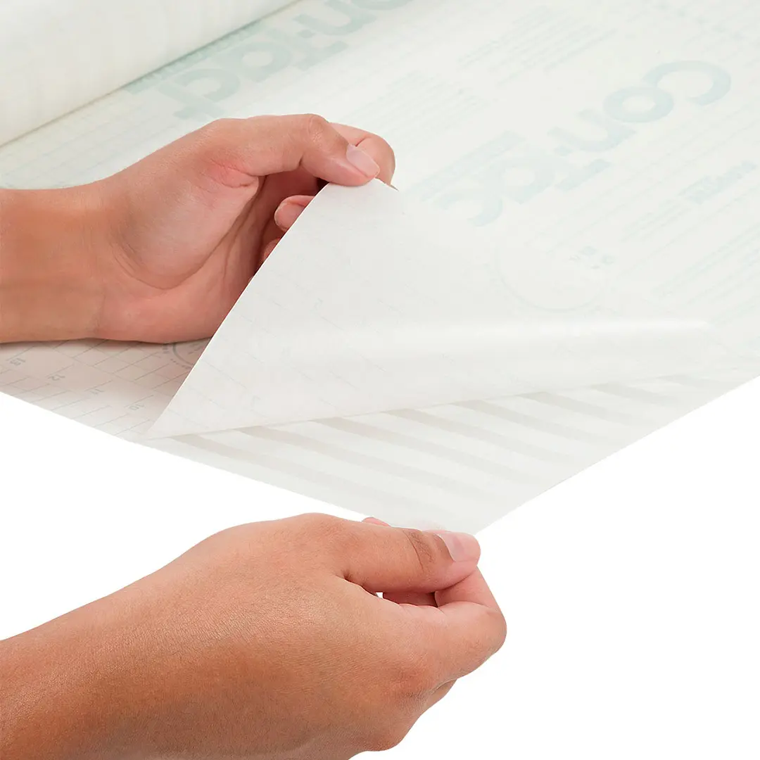 Remova o liner (papel protetor do adesivo) com cuidado e posicione o material.