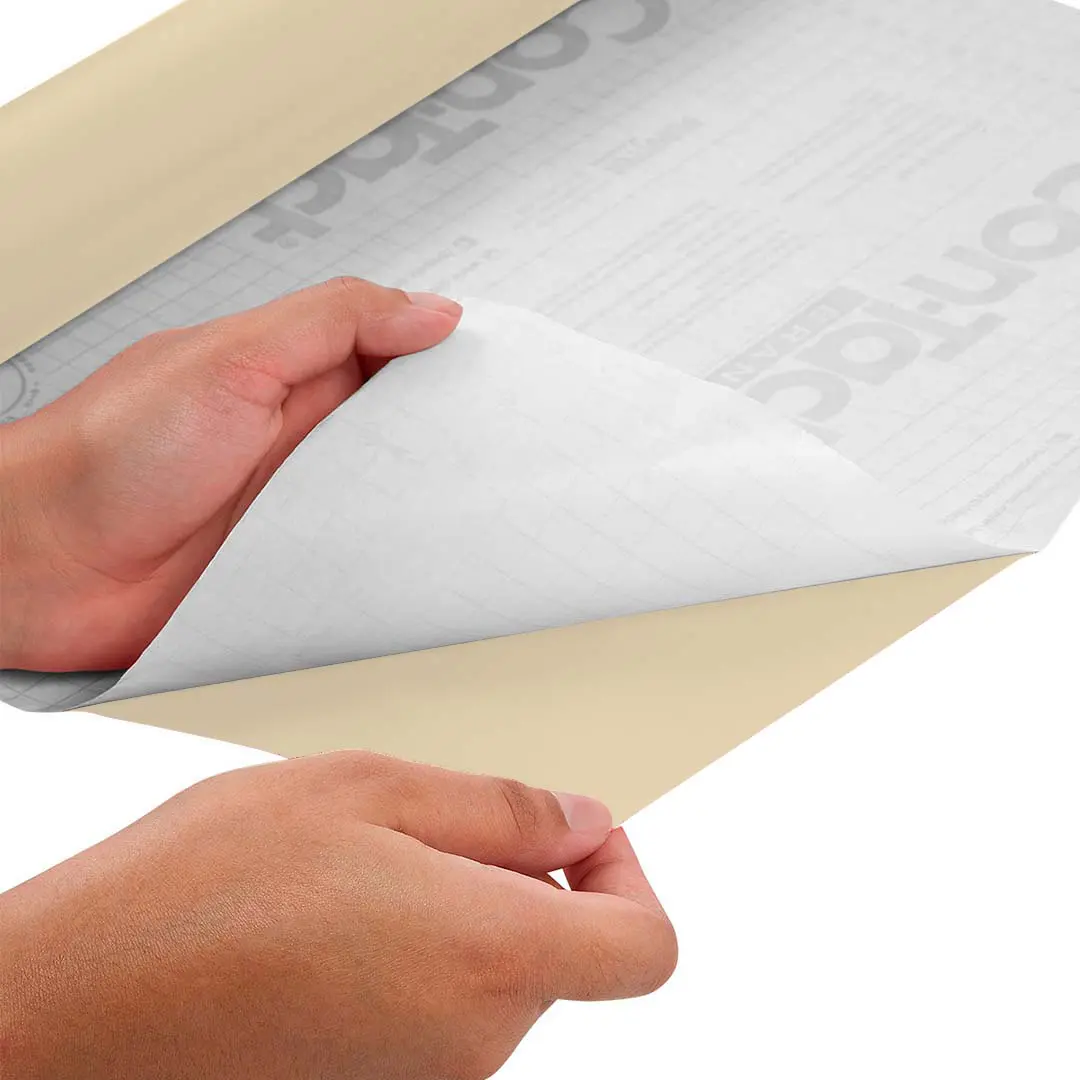 Remova o liner (papel protetor do adesivo) com cuidado e posicione o material.